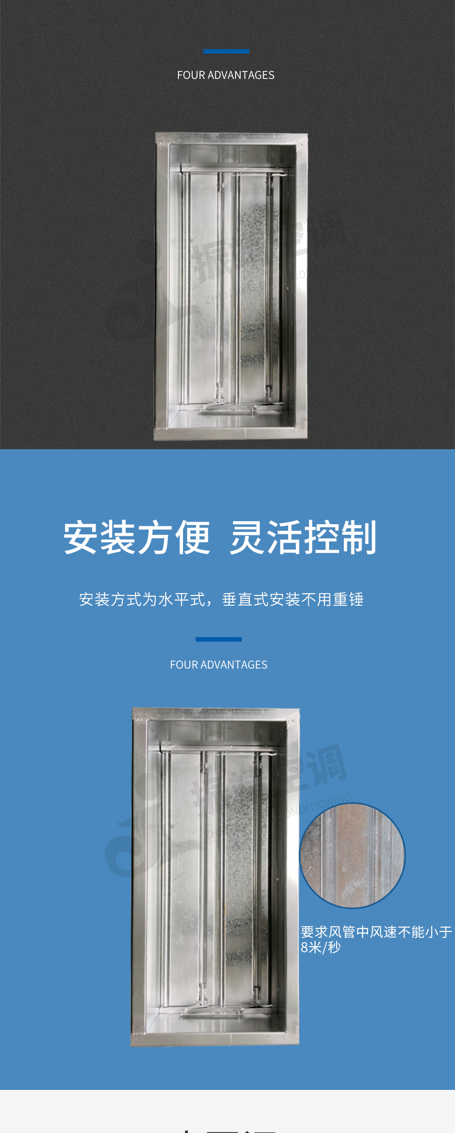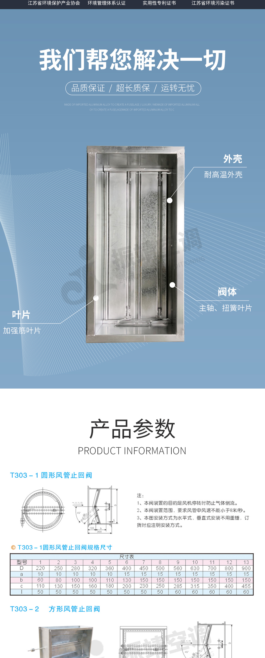 止回閥裝置的目的是風機停轉(zhuǎn)時防止氣體倒流。裝置范圍要求風管中風速不能少于8米/秒。