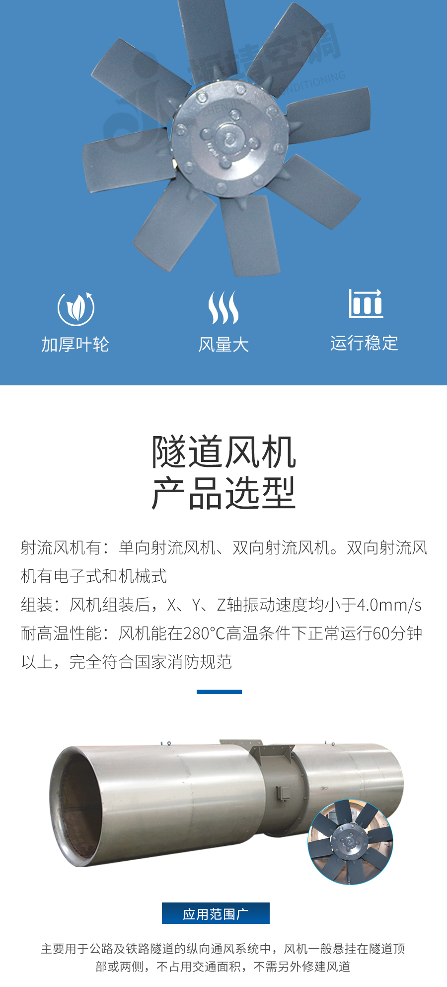 隧道風機也叫隧道射流風機、隧道風機、射流風機,廣泛應用于水利大壩工程、公路、鐵路、地鐵等隧道的實際使用。