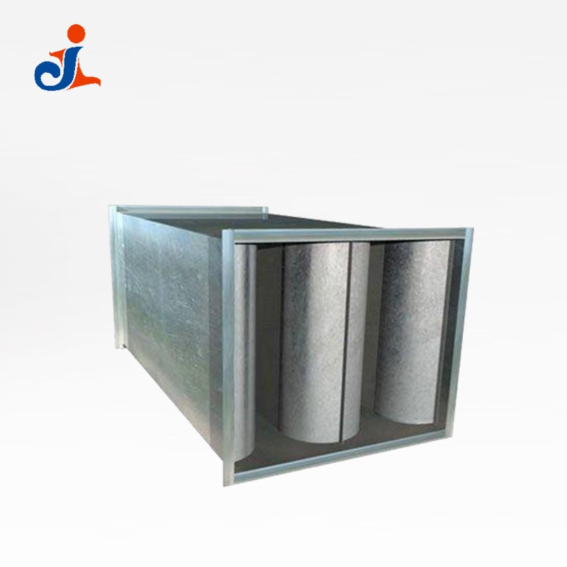 阻抗型消聲器利用消聲器內管道截面突變,內外室之膨脹室作用,對低頻及部分中頻起有效的作用,而阻式吸聲片對中高頻有良好的消聲作用,是一種廣頻消聲器,廣泛應用于空調系統中降低中低壓風機的噪聲,為加強消聲效果,也可多節消聲串聯使用,風速一般在6-8米/秒。