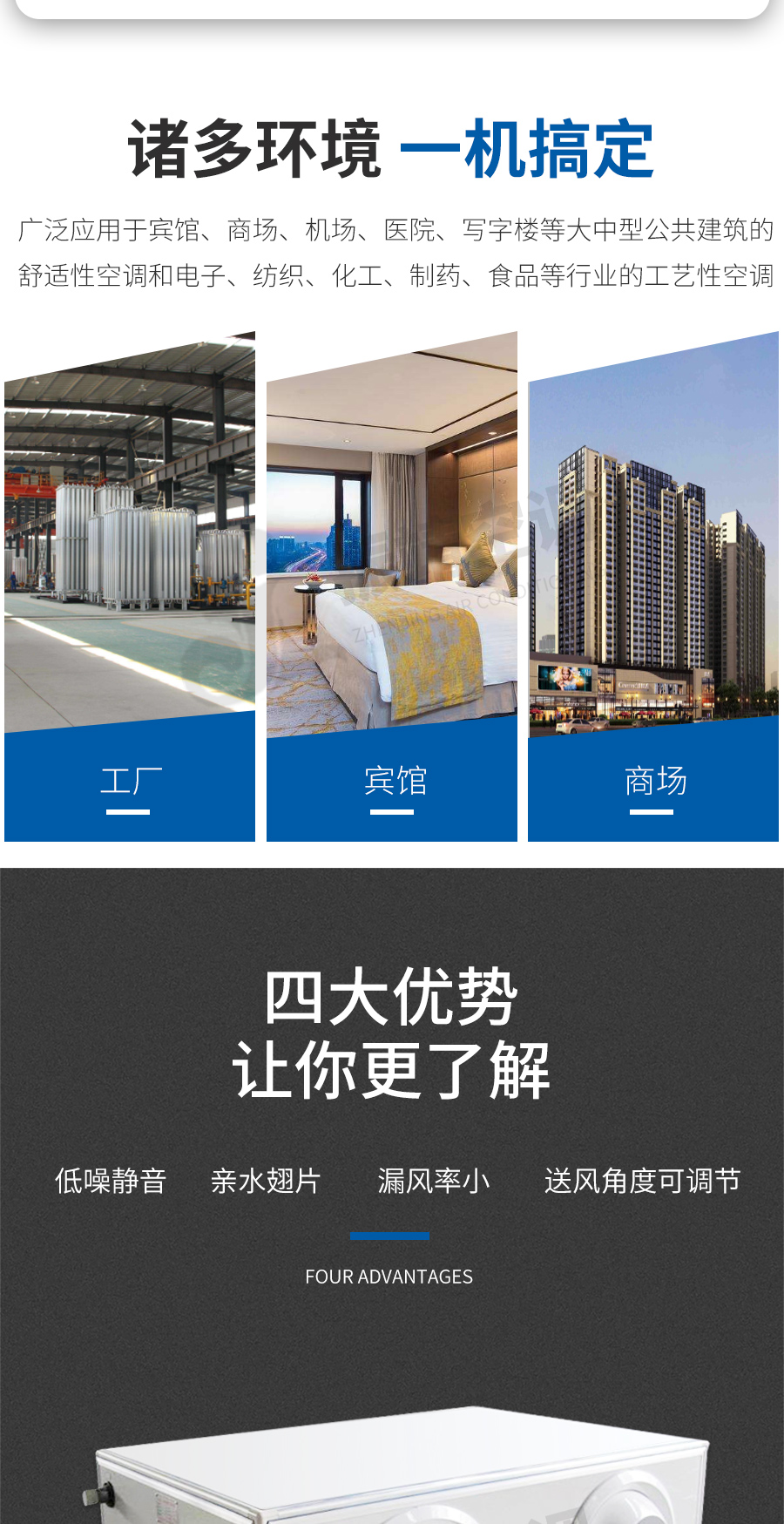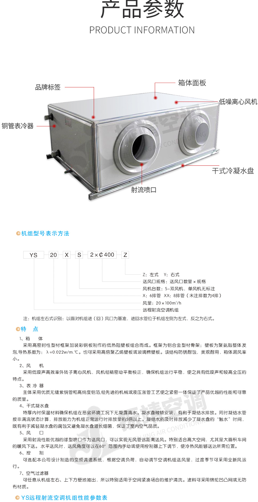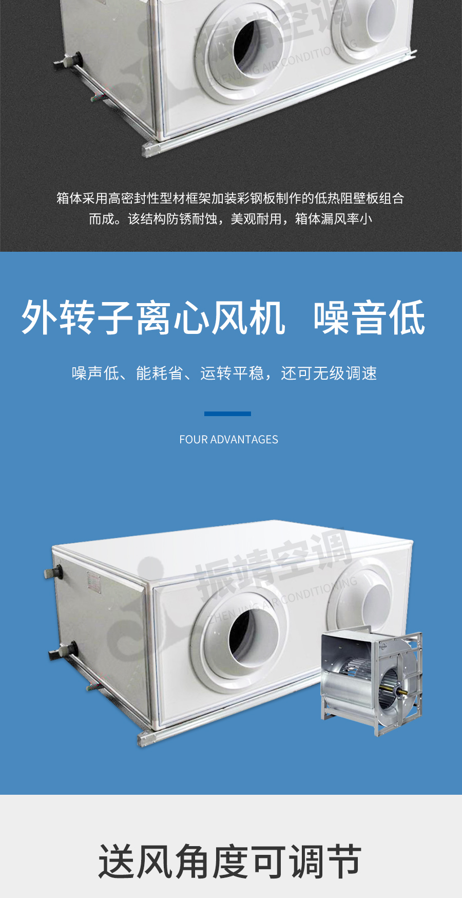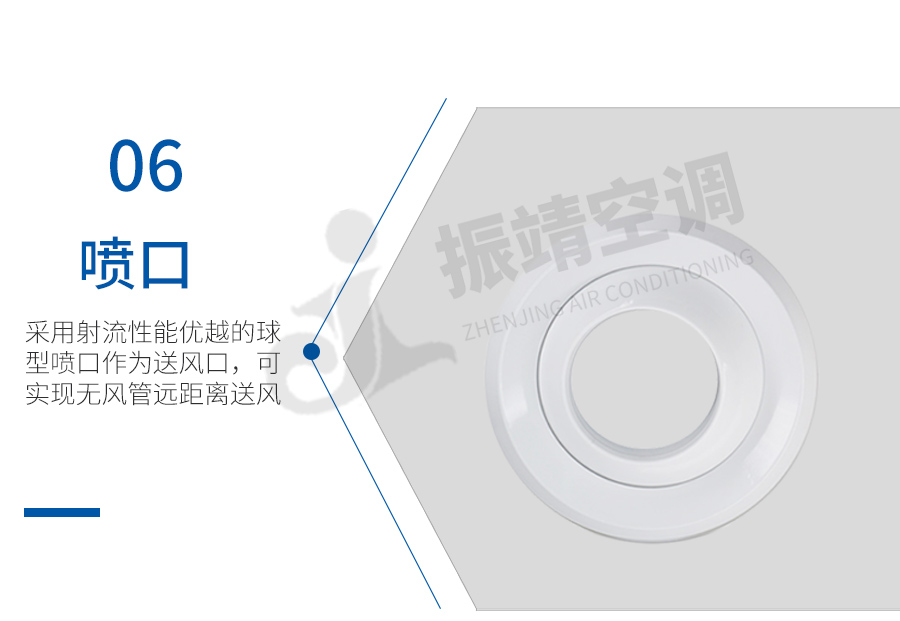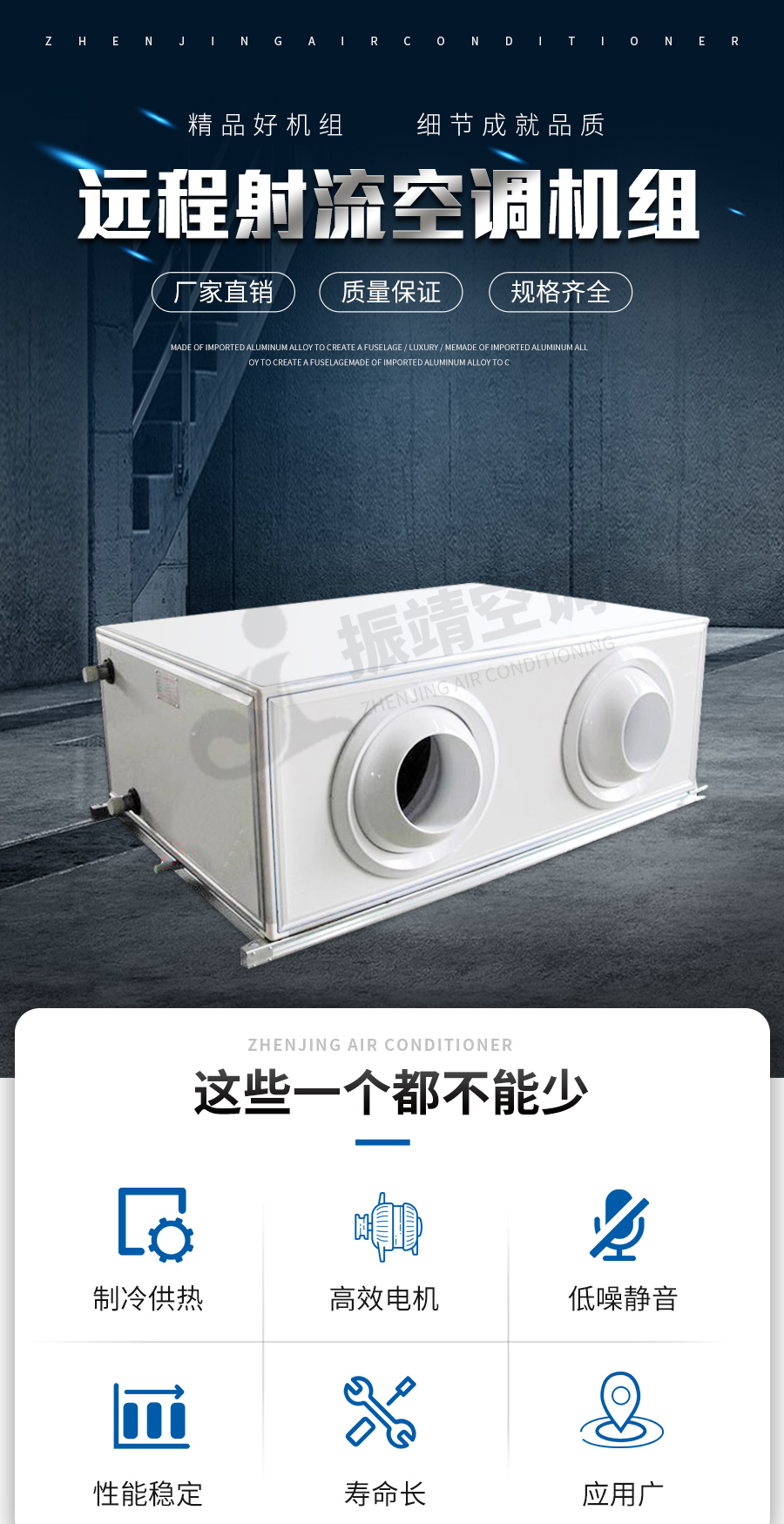 遠程射流機組在具備冷卻、加熱、干燥、加濕功能的同時,可實現無風管遠距離直接送風,具有節省空間,降低層高,一次性投資大幅度減小,運行費用低等特點,同時機組送風角度可在60°范圍內自由調節,確保冷熱風送到指定位置,創造出舒適的空調環境。